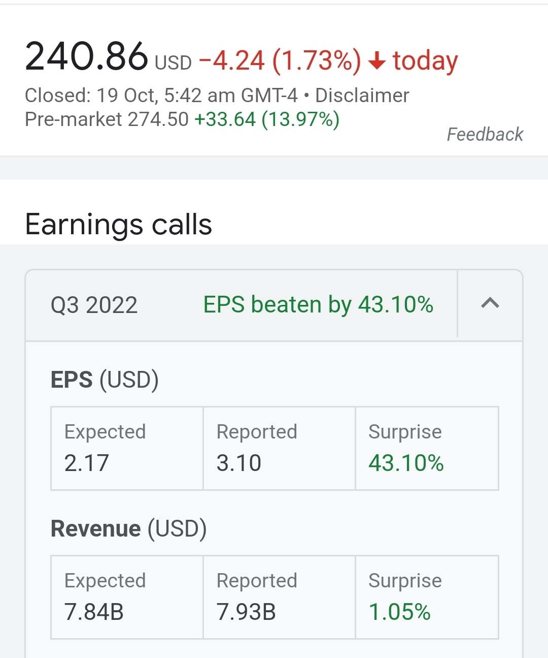 Pre trading it is up almost 14% to $274 vs yesterday's close of 240.86.