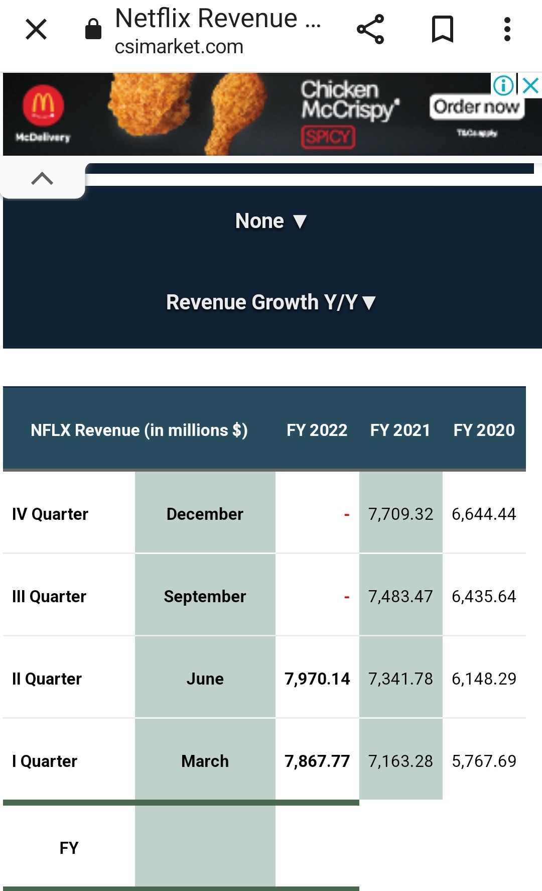 So what's the growth rate? Revenue growth year on year is calculated here. Quarterly revenue in 2022 divided by 2021.