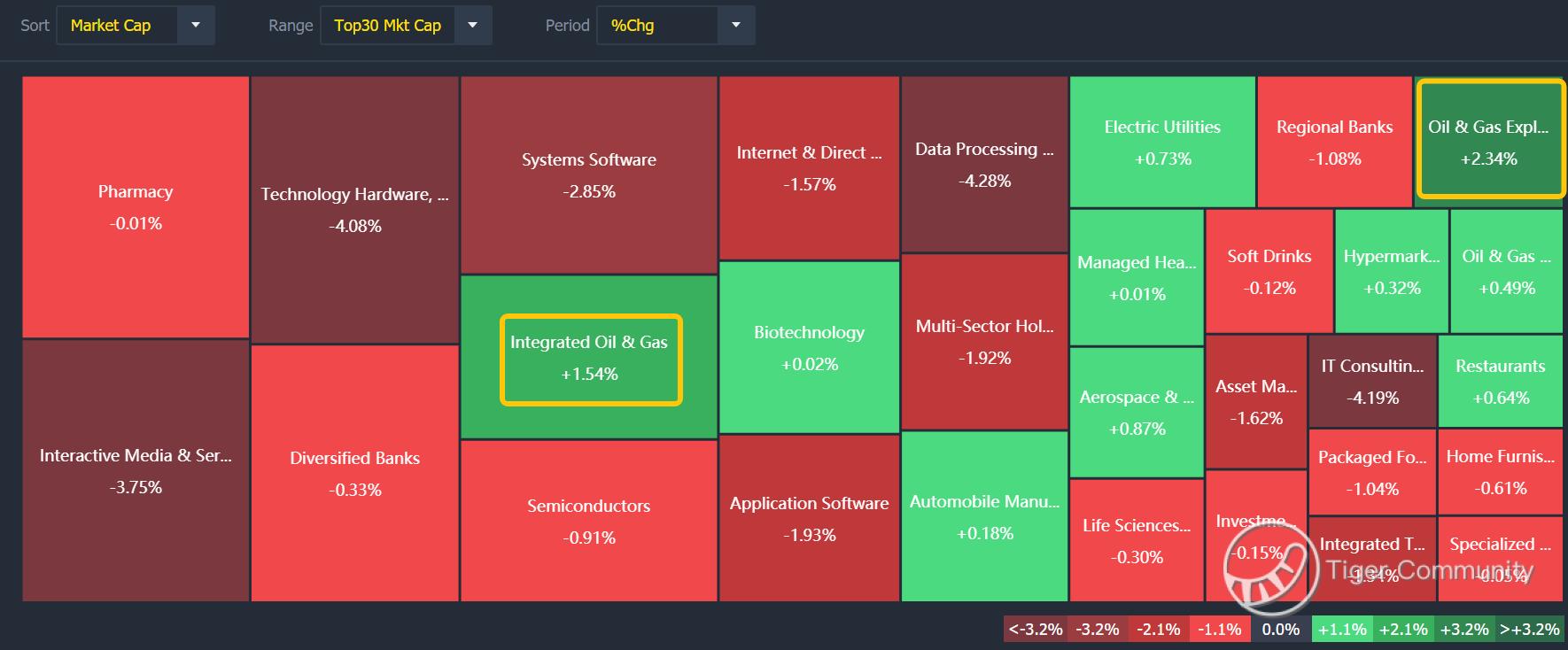 On thursday trading, Oil & Gas Exploration and Production industry top the increase among the whole market industries. Then Intergrated Oil & Gas Industry see 1.54% increase.