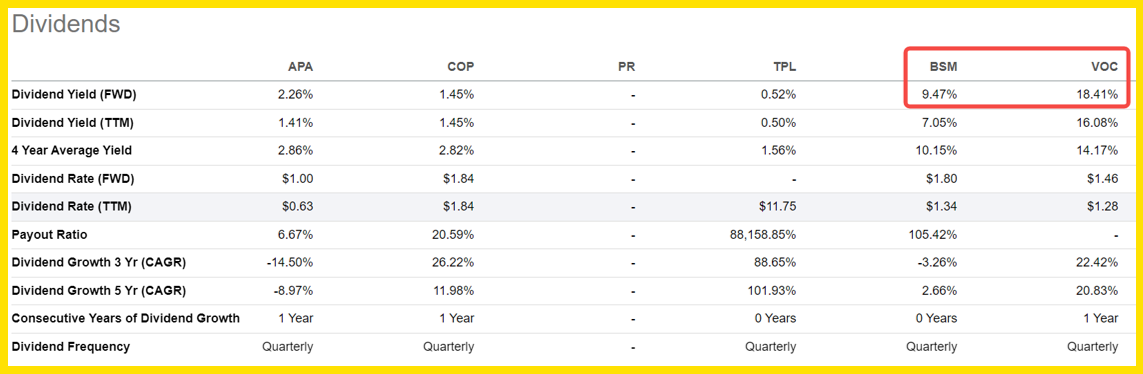 Dividends: $VOC Energy Trust(VOC)$ and$Black Stone Minerals LP(BSM)$  top the dividends yield.