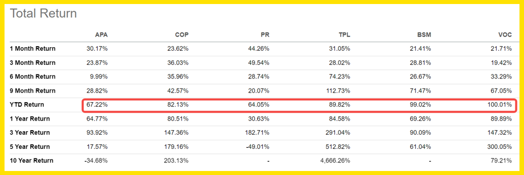Oil &Gas Explorers: VOC, TPL, BSM, COP, APA &PR Hit New Highs!