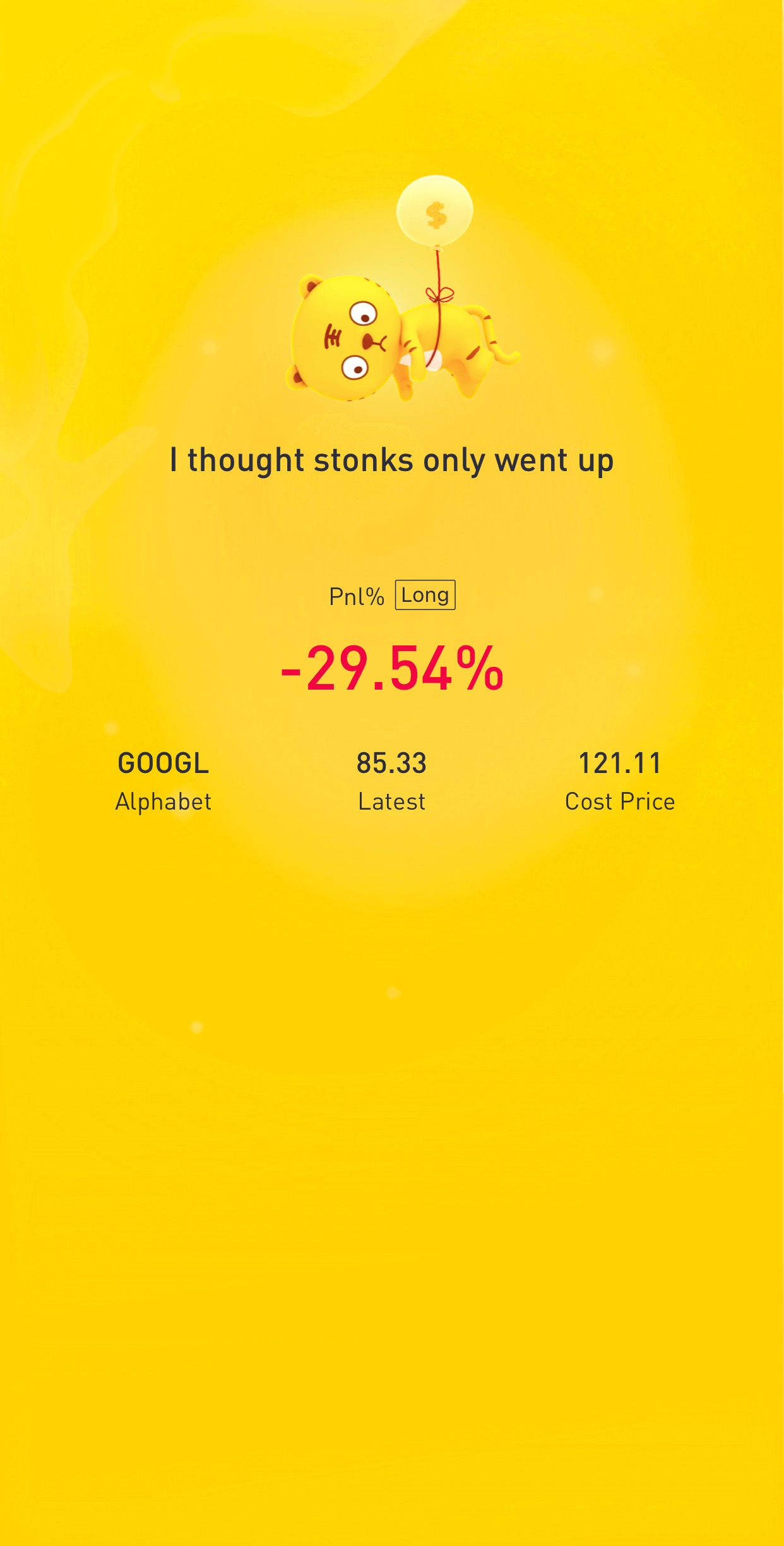 $Alphabet(GOOGL)$Not a good time for $Alphabet(GOOGL)$[Sad] Don't even think my position is that bad actually but it decided to crash so much. 75 possible? Camping [Serious] to add more.