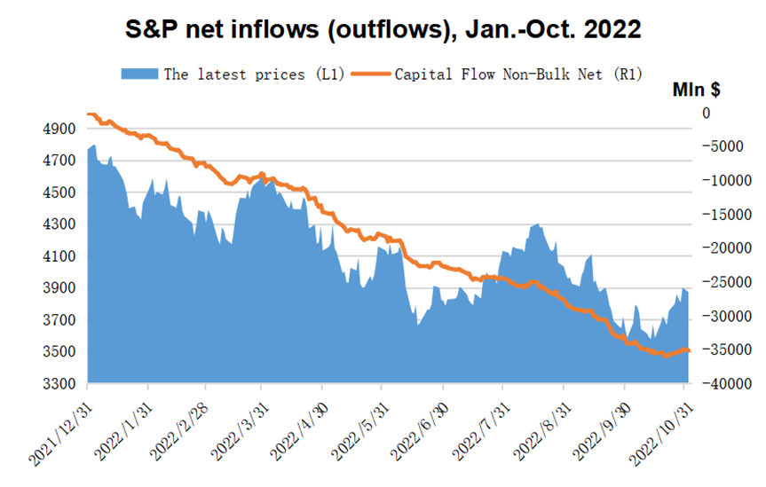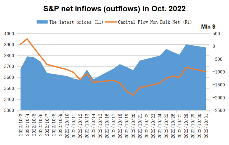 According to the S&P 500 index, funds have been flowing out in the first 10 months of this year, and the total outflow of funds from non-block transactions exceeds 35 billion US dollars. However, compared with previous months, October is also the month with the least outflow this year.