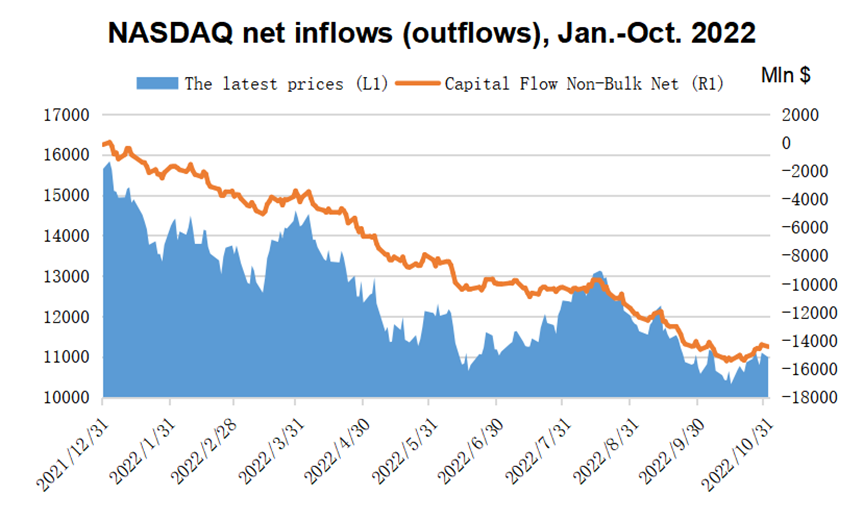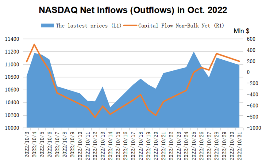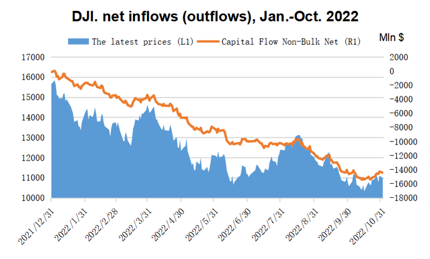 On Dow Jones' side, the outflow of non-block transactions exceeded $14 billion in the whole year, and although there was a big increase in October, there was still an outflow of $700 million.