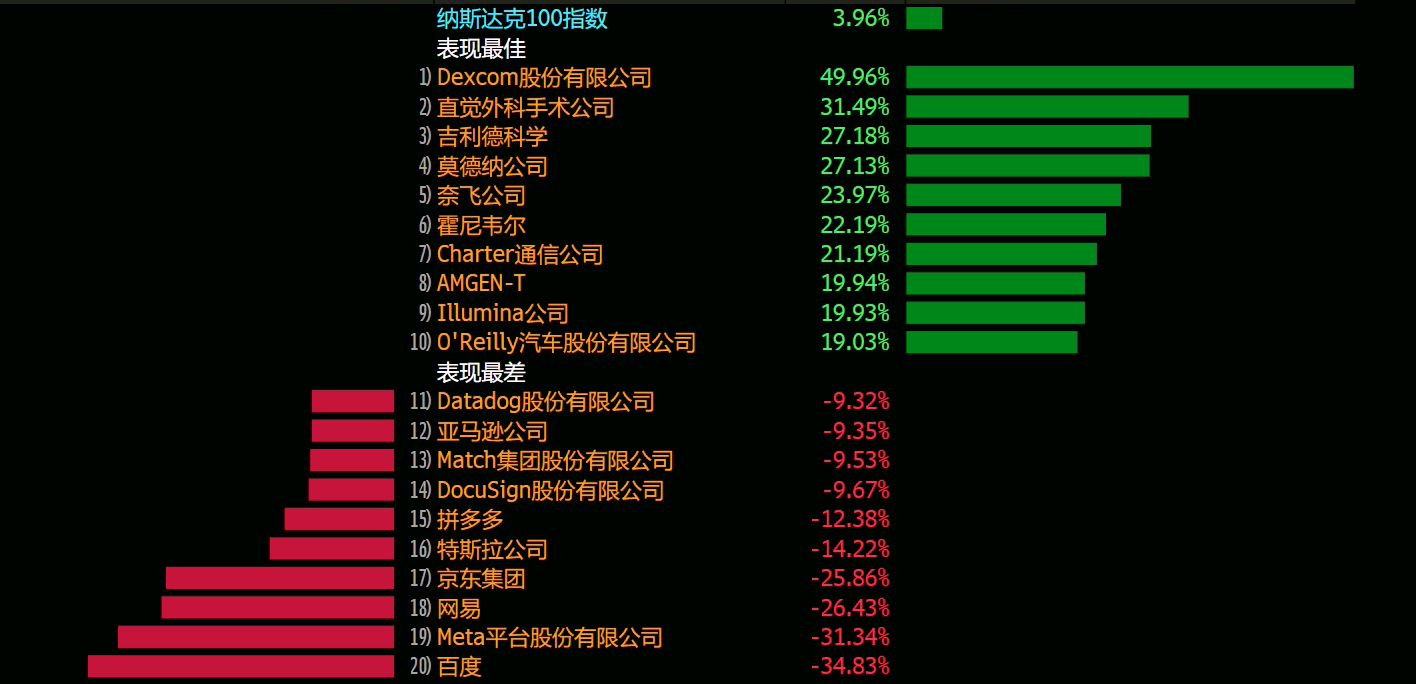 Those who perform poorly include$Baidu(BIDU)$ $JD.com(JD)$ $NetEase(NTES)$$Pinduoduo Inc.(PDD)$$Docusign(DOCU)$$Match(MTCH)$Wait