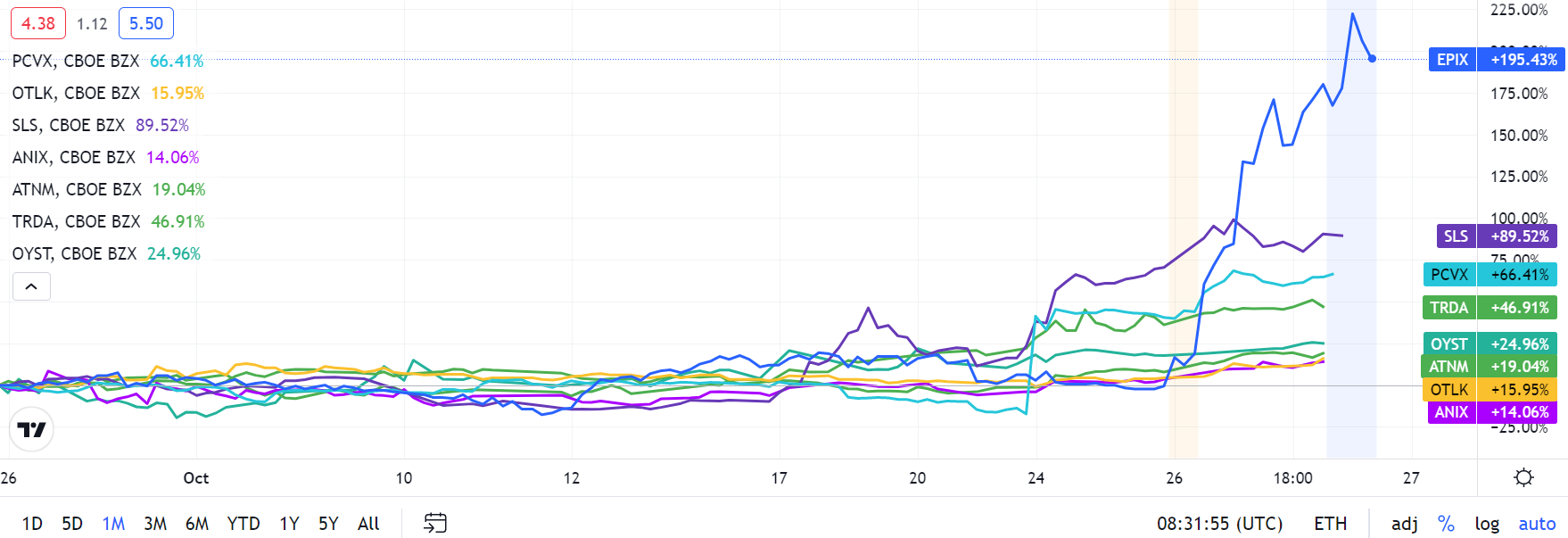 The above bio stocks show decent performance in October, some highlights related to the recent surge as below: