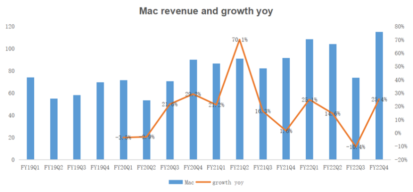 If we combine Q3 and Q4 Mac revenue, the total revenue will be $18.89 billion, up 8.5% from the same period last year. Thus, the growth of Mac is not too outstanding: