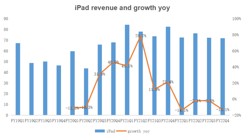 iPad revenue declined 13% year-over-year this quarter, mainly due to the demand pullback after pandemic dividend and strong dollar in the quarter.