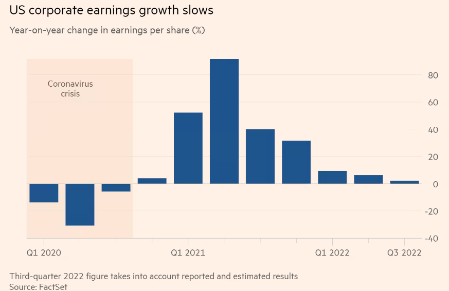Overall, companies listed on the S&P 500 index have revealed year-on-year earnings per share growth of 2.1%, according to FactSet data based on groups that have already reported and estimates for those that have not. That would mark the slowest pace of profit growth in two years, when companies were still reeling from the effects of pandemic-induced lockdowns.