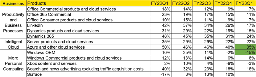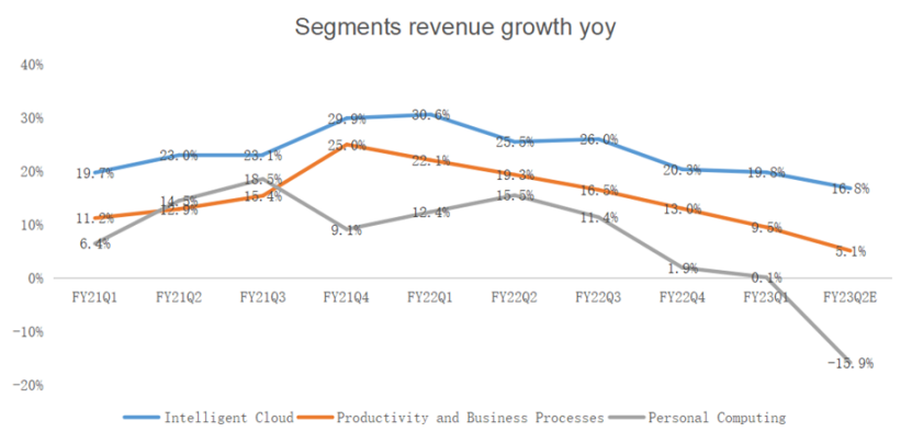 Considering the high base from the pandemic dividend last year and the macroeconomic downturn this year, Microsoft's revenue growth rate is not bad.