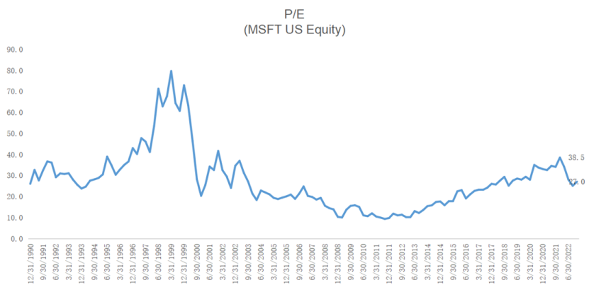 In terms of guidance and cloud services revenue base, Microsoft's growth rate will be lower than previous years. Microsoft's current P/E is still 27x, which can explain the share prices plunge: