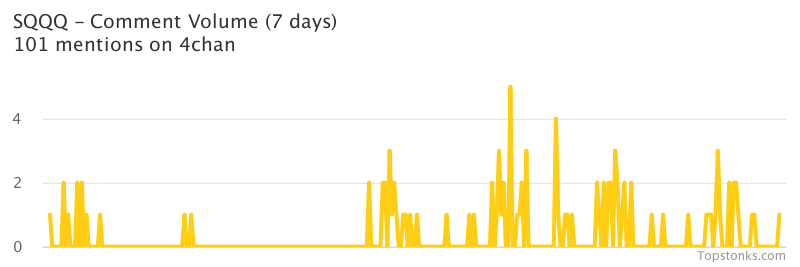$Nasdaq100 Bear 3X ETF(SQQQ)$ one of the most mentioned on 4chan over the last 24 hours.