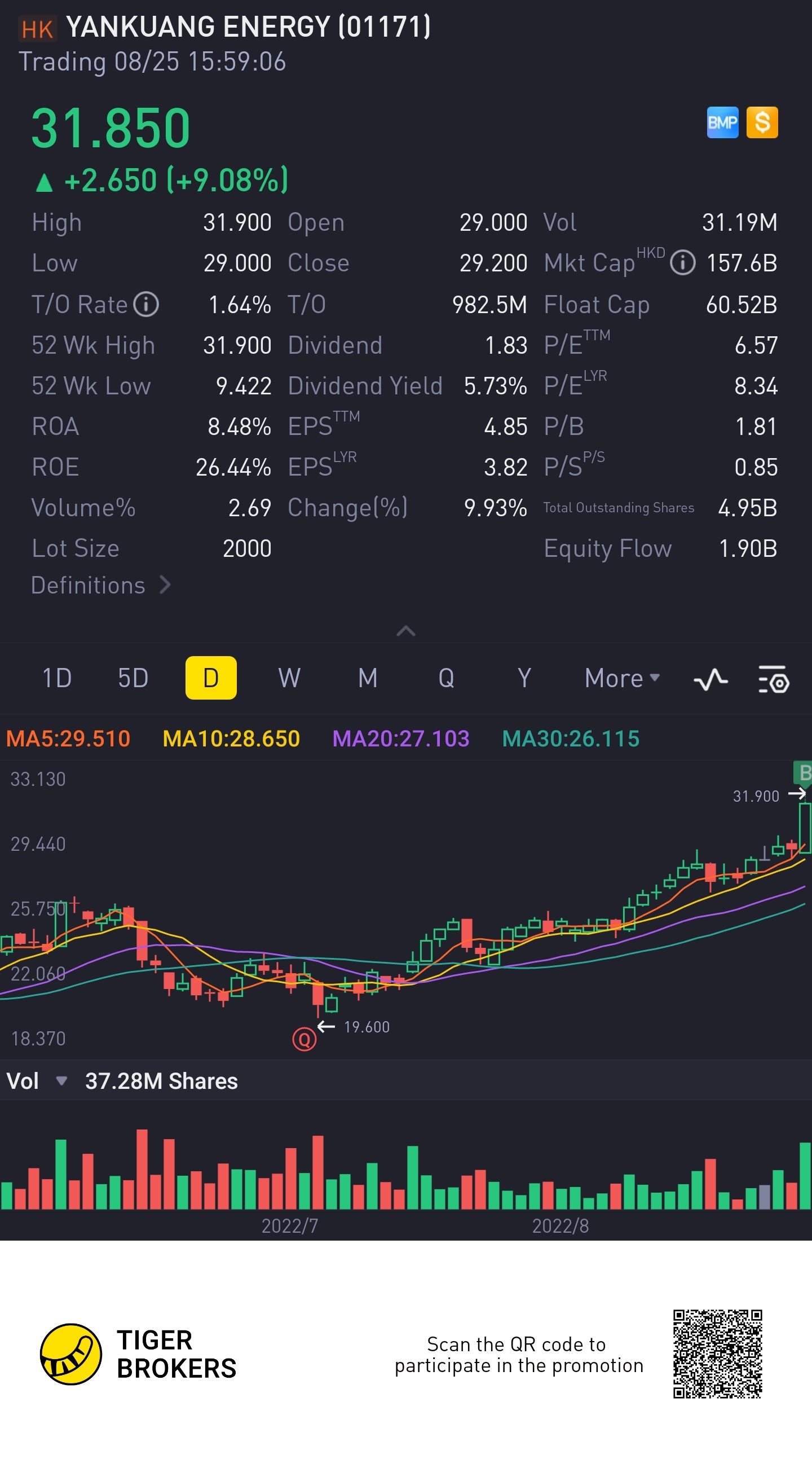 $YANKUANG ENERGY(01171)$Energy seems to be making a come back despite its bearish stance. Weekly still bullish. Ideal buy point was 30. I bought in late. Buy.
