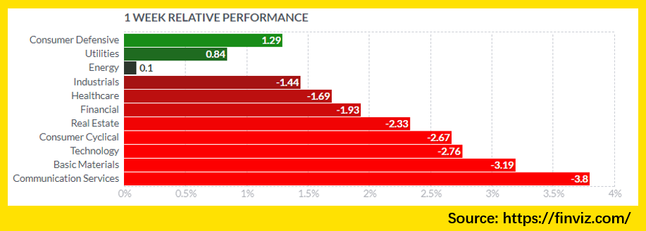 In the past week, consumer staples and utilities were the two best-performing sectors of the S&P 500's 11 sectors. Defensive sector leads the way. Conversely, the two worst-performing sectors were materials and communications services, which are cyclical sectors.