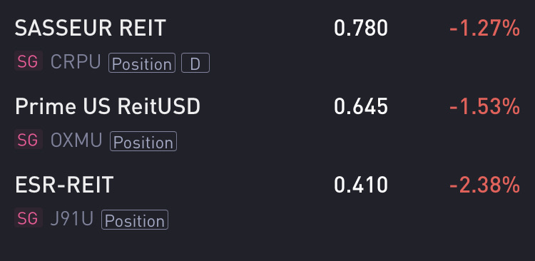 These 3 reits at the bottom of my watch listtoday [Cry] tried to dig out the news why, but not all are bad, lets share if you know my friends ?