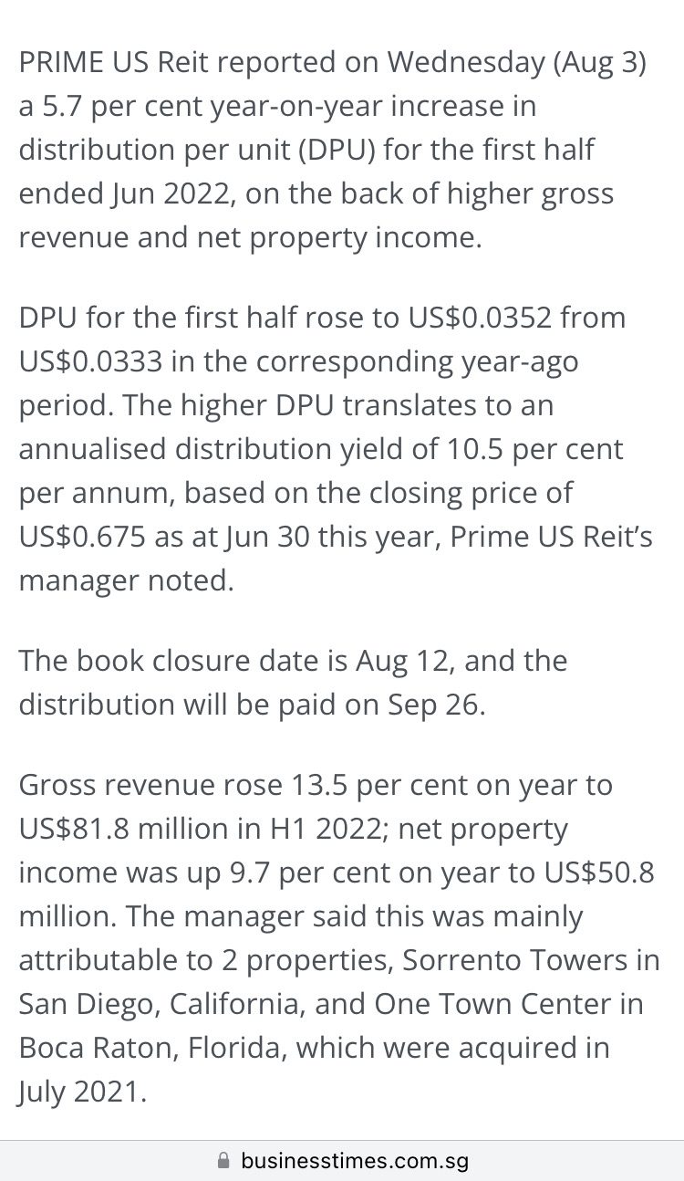 $Prime US ReitUSD(OXMU.SI)$DPU is higher yet the price is sliding [Surprised]