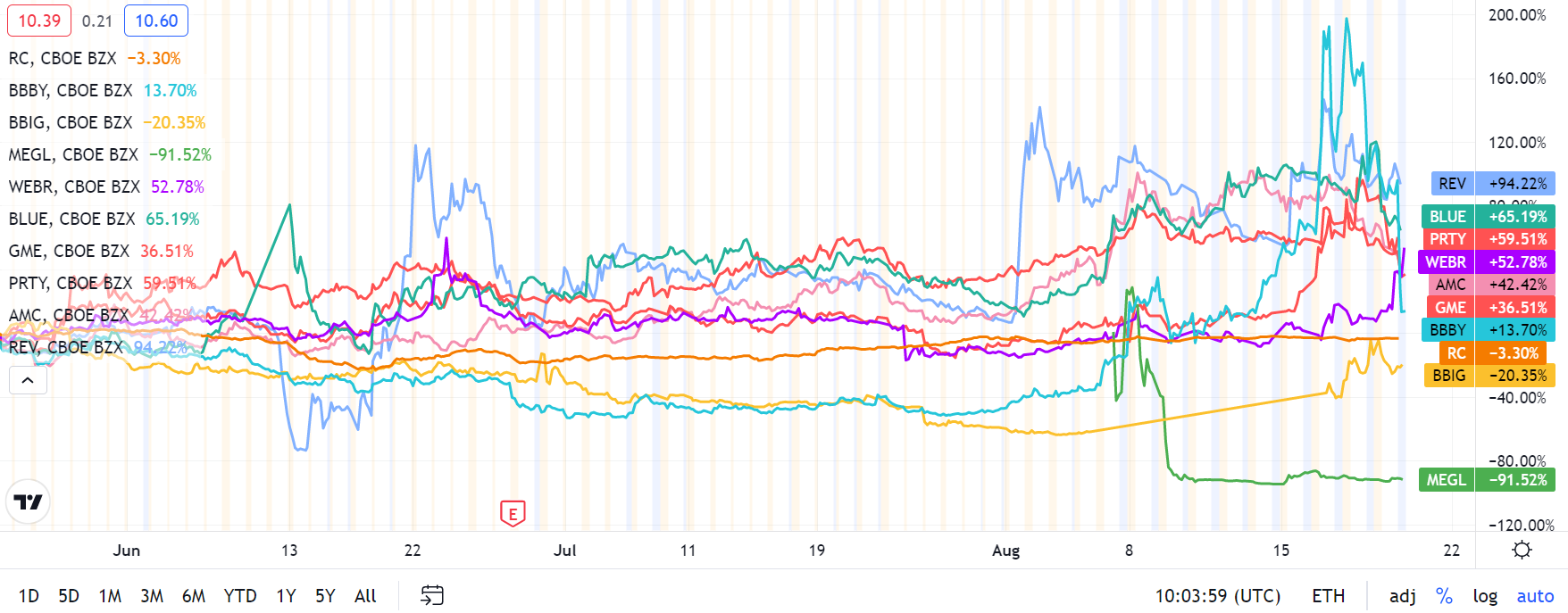 Below are the recent changes of $Bed Bath & Beyond(BBBY)$ ,$Ready Capital Corp(RC)$ $Vinco Ventures, Inc.(BBIG)$ ,$GameStop(GME)$ ,$Blue Apron Holdings Inc.(APRN)$ ,$AMC Entertainment(AMC)$ ,$Revlon(REV)$ ,$Weber Inc.(WEBR)$ ,$Magicstem Group Corp.(MGGI)$ ,$Party City Holdco(PRTY)$ Seems $Ready Capital Corp(RC)$ 's stock price is quite steady, how will it performs?