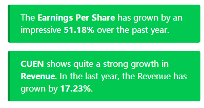 Looking at the last year, $Cuentas Inc.(CUEN)$ shows a quite strong growth in Revenue: 17.23% in the last year.
