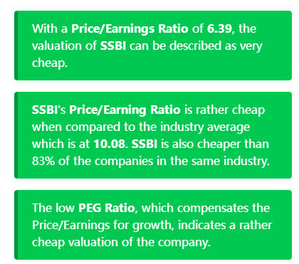 $Summit State Bank(SSBI)$: The low PEG Ratio, which compensates the PE for growth, indicates a rather cheap valuation of the company.